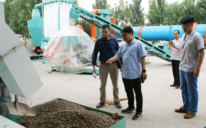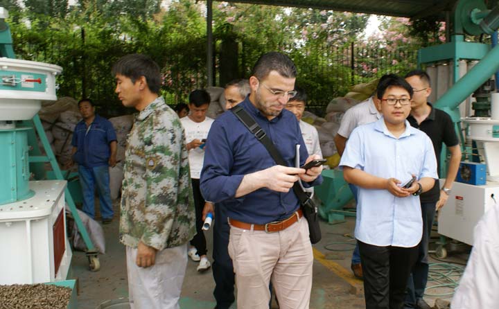 當(dāng)參觀到公司生產(chǎn)的560J型立式環(huán)模秸稈顆粒機(jī)設(shè)備時,客戶認(rèn)真詢問了設(shè)備的工作原理、結(jié)構(gòu)組成和部件加工等內(nèi)容,我公司技術(shù)人員耐心詳細(xì)的給客戶講解了相關(guān)內(nèi)容。我方給客戶親自演示了自主專利產(chǎn)品的制粒過程,客戶看后對產(chǎn)品贊不絕口。